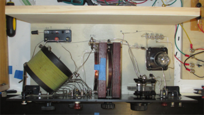 Layout style: Breadboard with exposed tubes, big tuning cap, and visible coils.